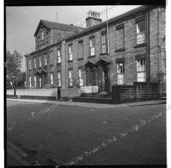 This fine group of attractive stone-built properties helped to confirm Pitt Street as one of the best-looking parts of central Barnsley. The buildings to the left – with distinctive 'dormer' extension – served as a Convent (of the Sisters of Mercy) from about 1900. The remainder of the group were used by the Barnsley Conservative Association as their headquarters. The Convent was demolished during the clearances for the building of the town Relief Road and Bridge. The original sash windows and classical doorways remain as distinctive features.
